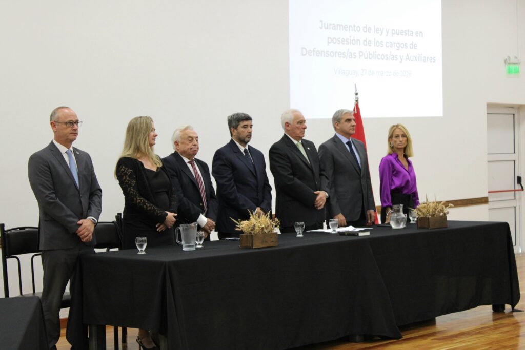 Este viernes se realizó la jura de defensores y defensoras públicos/as y auxiliares de distintas jurisdicciones de Entre Ríos. Fue en el Centro de Convenciones “Papa Francisco” de Villaguay, en un acto que encabezó el defensor general de la Provincia, Maximiliano Benítez, con la participación del presidente del Superior Tribunal de Justicia, Germán Carlomagno; el vicepresidente, Carlos Federico Tepsich; el vocal Leonardo Portela y las vocales Gisela Schumacher y Laura Soage, así como del intendente Adrián Fuertes.
